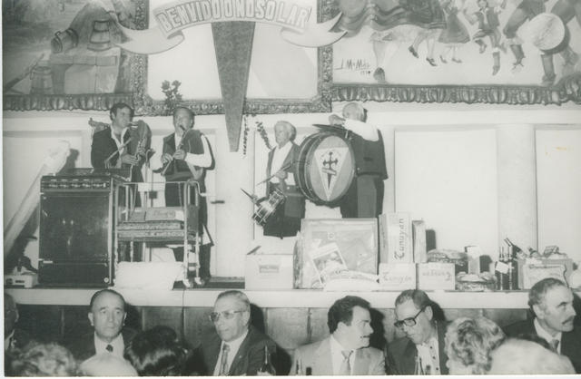 Actuación del conjunto de Gaitas Alborada en la reunión a beneficio del Hogar Gallego para ancianos de Domsellar