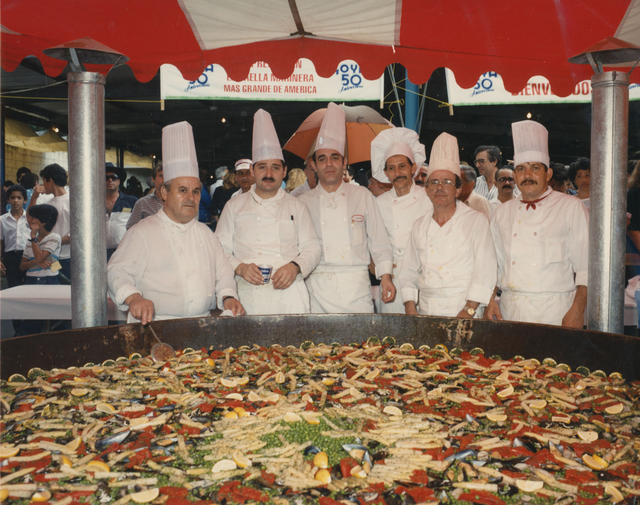 Los seis chefs de cocina que confeccionaron en el Centro Gallego de Puerto Rico la paella marinera más grande de América