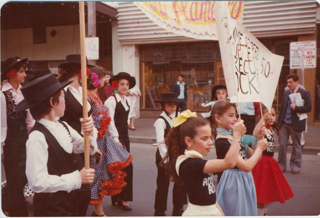 El grupo de baile flamenco del Hogar Español en el desfile del Día de la Hispanidad