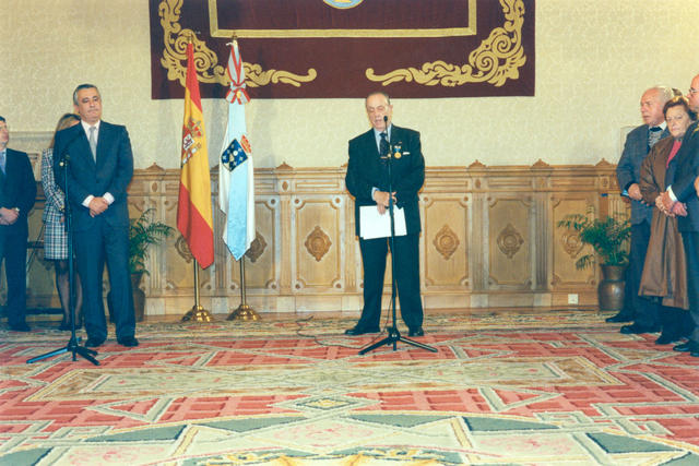 Discurso del Presidente de la Xunta de Galicia, Manuel Fraga, en presencia del Ministro de Trabajo, Javier Arenas, tras recibir la Medalla de Oro de la Emigración
