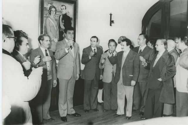 El Sr. Vicecónsul eleva su copa junto a los representantes de la colectividad española. - Archivo Gráfico de Carta de España