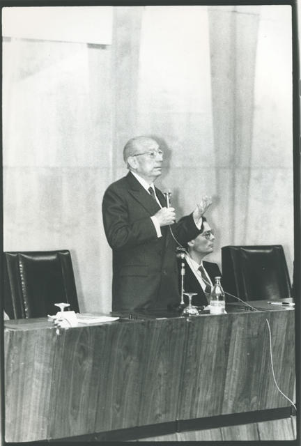 Inauguración del I Congreso de Centros Regionales en abril de 1985 por el Alcalde de Madrid, Enrique Tierno Galván