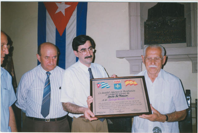 Entrega de diploma de Socio de Honor en la Sociedad Asturiana de Beneficencia a Santiago González Romero