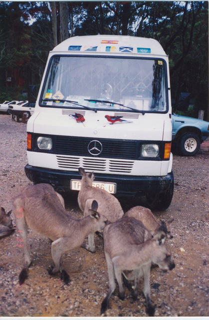 Canguros y periquitos frente a la furgoneta de Ana Padrón