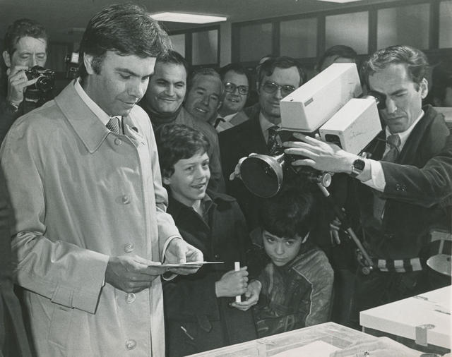 El Secretario General del PSOE, Felipe González, ante la mesa del colegio electoral