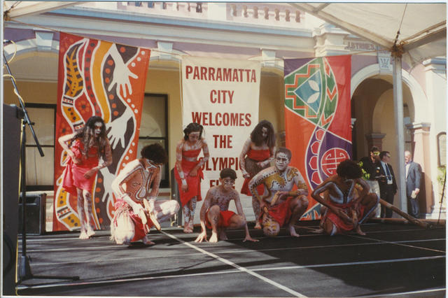 Grupo de danza aborigen con motivo de la acogida de las Olimpiadas 2000