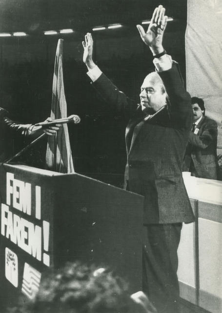 Jordi Ouyol, Presidente de la Generalitat de Cataluña, durante un mitin.
