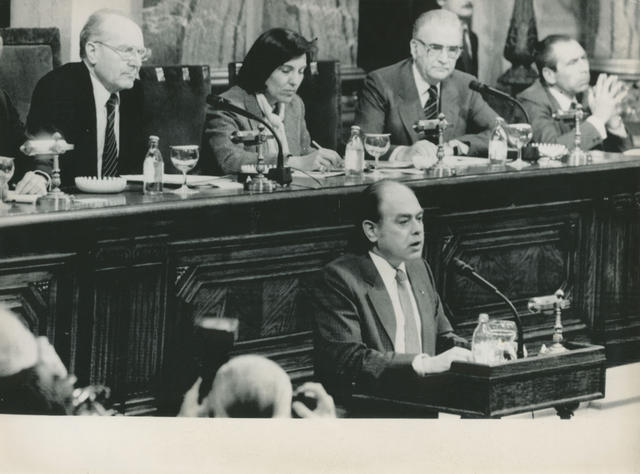 Jordi Puyol, Presidente de la Generalitat de Cataluña, hablando en el Parlamento de Cataluña
