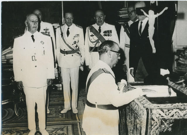 Juramento de cargo en presencia del General Francisco Franco.