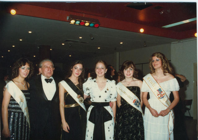 La nueva Madrina del Club España con el Presidente y la ex-Madrina y señoritas de otros centros. Noviembre 1981