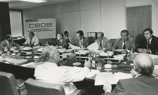 Los miembros del comité ejecutivo de la C.E.O.E. presidido por Carlos Ferrer Salat se reunió en Madrid con carácter extraordinario para estudiar el programa económico del Gobierno