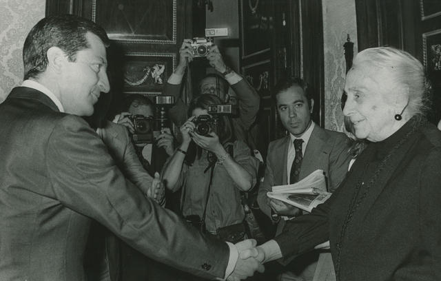 El Presidente Suárez saluda a La Pasionaria en el Congreso