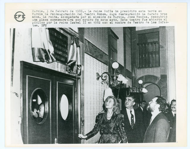 La reina Sofía presidiendo en Murcia la reinauguración del Teatro Romea, cuya restauración ha durado tres años. Le acompañaba el alcalde de Murcia, José Méndez