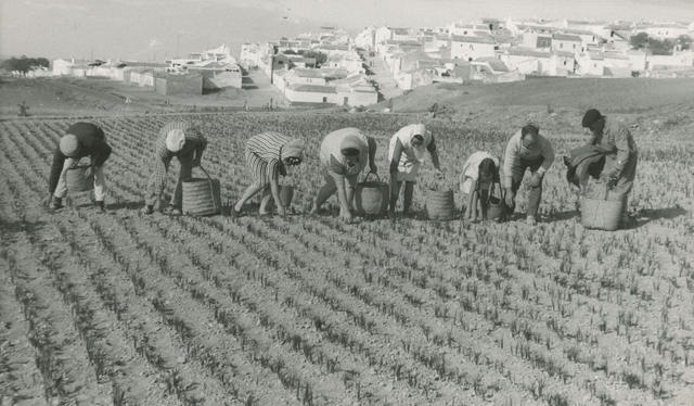 Campesinos plantando la rosa del azafrán - Archivo Gráfico de Carta de España