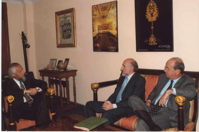 El Director General de Migraciones Antonio Maceda junto con el Embajador de España Andrés Collado en la visita que realizaron al Vicecanciller ecuatoriano José Jijón