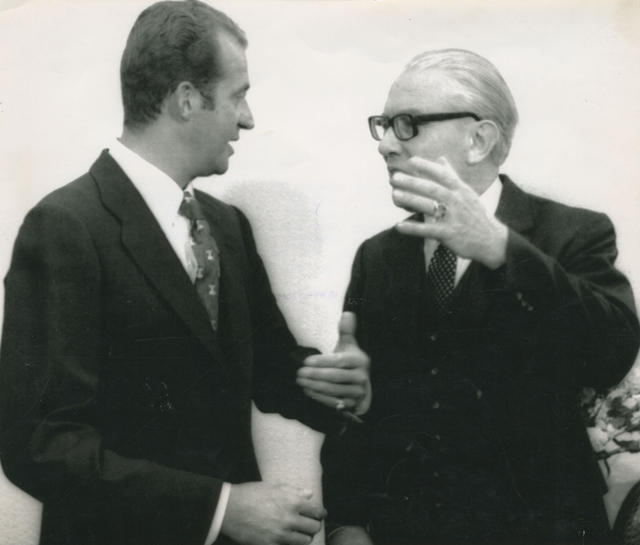 El Rey de España, Juan Carlos I, junto al Presidente del Bundestag, Von Hassel
