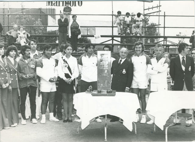 De izquierda a Drrecha: Loyo Mayo, Zarazua, Rocío Jiménez Madrina del Club España, Chavez, D. Vicente Gutiérrez Bayón Presidente del Club España y Baraldi. Entre los jugadores destacó la presencia del gran tenista español, Manuel Sanatana