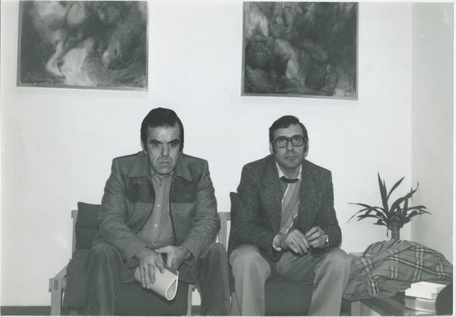 Manuel Galán (izquierda) y Gumersindo Guerra, del Movimiento Asociativo de Holanda, noviembre de 1979
