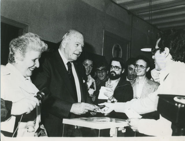 El Presidente de la Generalitat de Cataluña, Josep Tarradellas, acudió, en compañía de su esposa, a depositar su voto