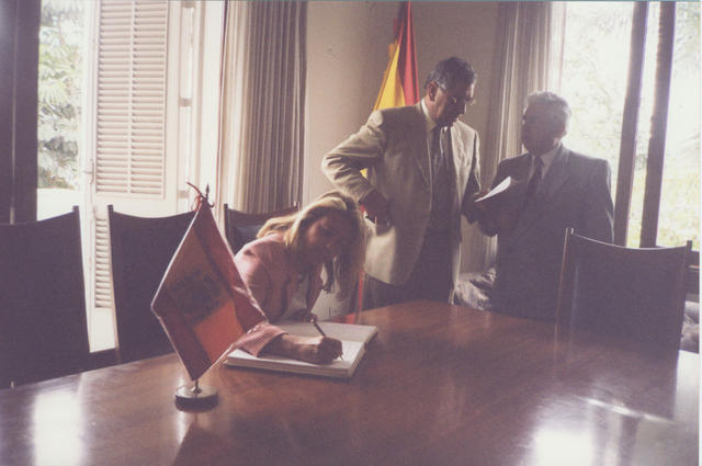 Diciembre 1998, Ángeles Muñoz Uriol firmando en el libro.