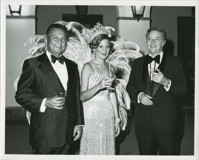 Coincidiendo con el aniversario de la construcción del edificio de la Casa de España de San Juan de Puerto Rico, se celebró el tradicional baile de presentación en sociedad de las señoritas "quinceañeras", hijas de los socios. Este año, veintiocho debutantes fueron la atracción de las miradas de los asistentes. En la foto, la señorita Carmen María del Valle Rivera, Reina de la Entidad, hace un brindis acompañada del Presidente del Comité de Festejos de la Casa de España, don Rafael Herrerías, y del directivo don Ángel Antonio del Valle, padre de la Reina