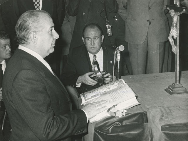 Instantánea del nuevo director General de Prensa y Cultura Popular, Blanco Tobio, jurando su cargo