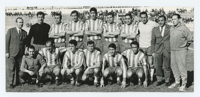 Posado del equipo del Granada con su entrenador Joseíto. Publicado en número 103