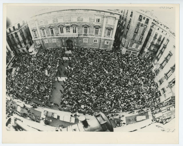 Panorámica en picado del recibimiento de los aficionados del Barcelona