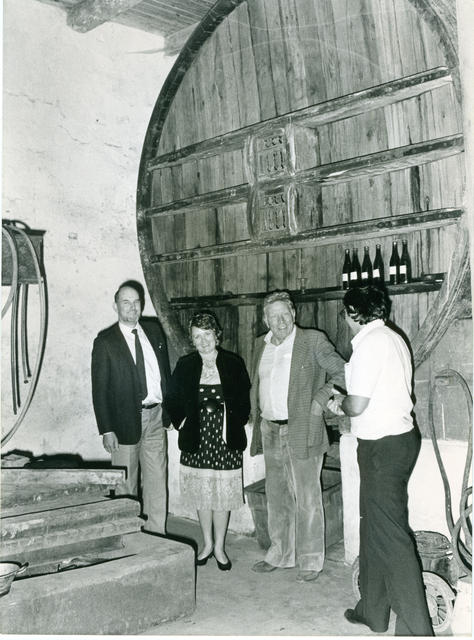 Directivos del Instituto Español de Emigración en una bodega francesa