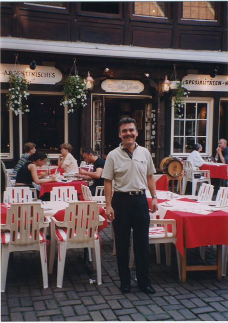 Español delante de su empresa en Alemania.