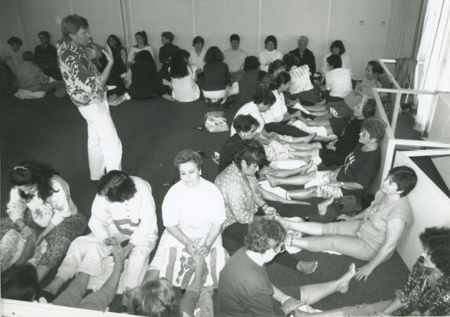 Mujeres haciéndose masajes.