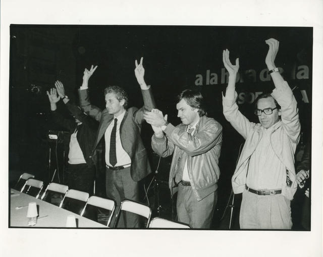 Felipe González y Alfonso Guerra celebrando el triunfo.