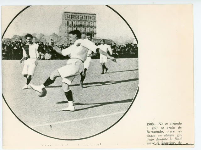 El futbolista Berraondo rechazando un ataque ante el Sporting. 1908