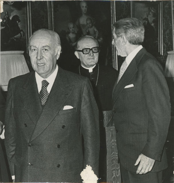José María Areilza con dos personajes sin identificar