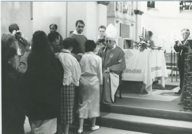 Monseñor Briva Miravent imparte el sacramento de la confirmación a españoles de Aquisgrán, Neuss y Düsseldorf