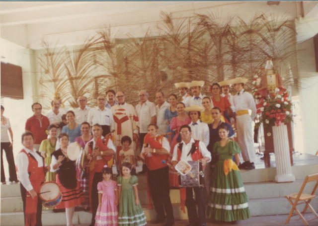 1977, posando los miembros de la Romería de la Virgen de Covadonga.