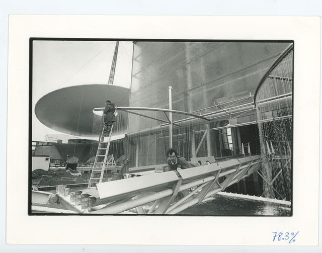 Un ingeniero y un albañil construyendo la estructura de un monumento