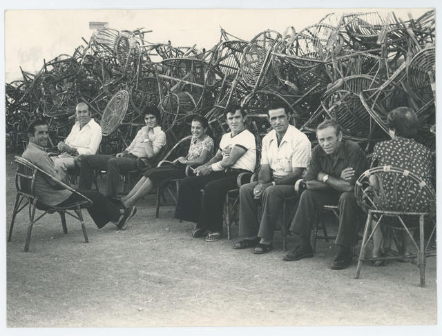 Un grupo de trabajadores de una fábrica de sillas artesanas