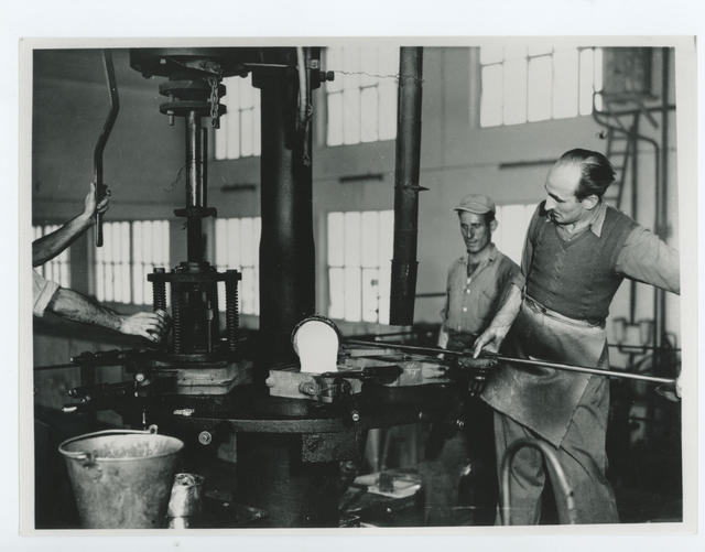 Trabajadores realizando la mezcla para crear cristal en la Fábrica de Vidrio de La Granja