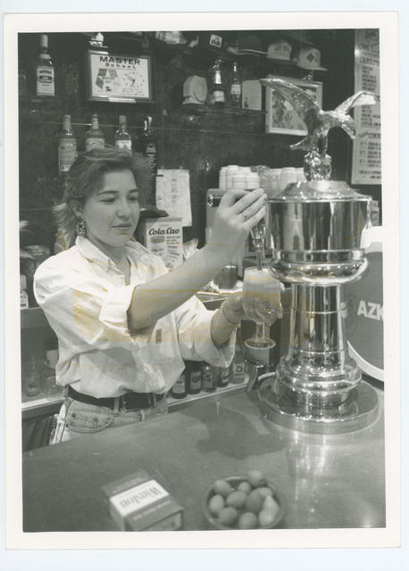 Una camarera tirando una caña