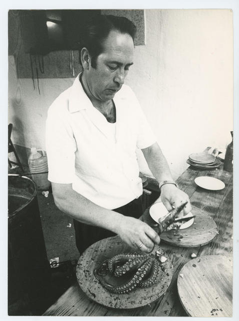 Feria del campo. Una hostelero partiendo una racción de pulpo