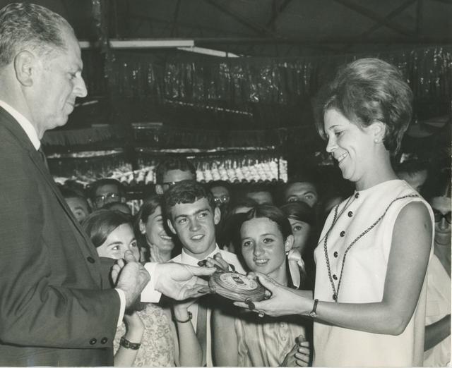 Entrega de premios a los componentes de "Coros y danzas" por el Gobernador del Estado