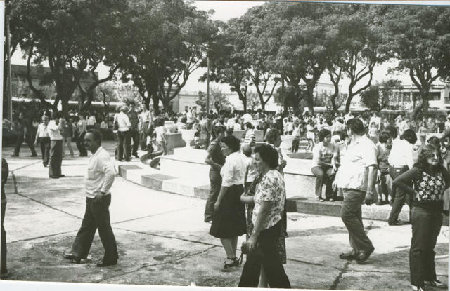Personas paseando por la plaza.