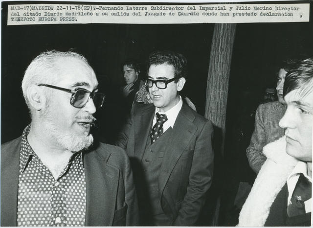 Fernando Latorre, Subdirector del Imparcial y Julio Merino, Director del mismo Diario, a su salida del Juzgado de Guardia donde han prestado declaraciones.