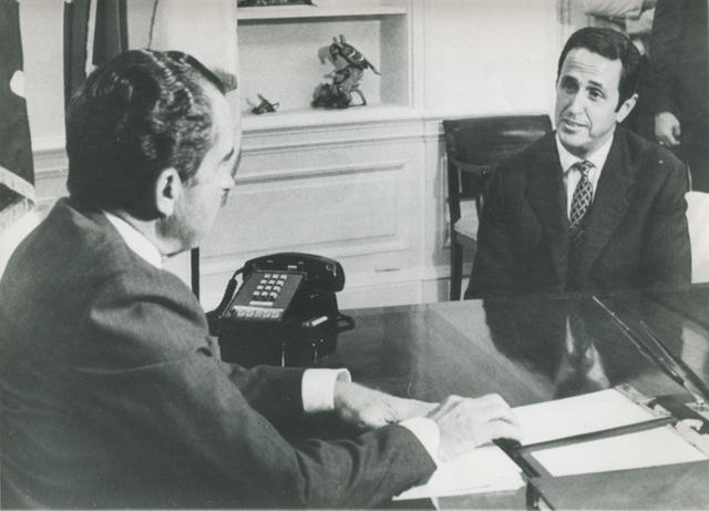 Gregorio López Bravo durante la entrevista mantenida con Richard Nixon