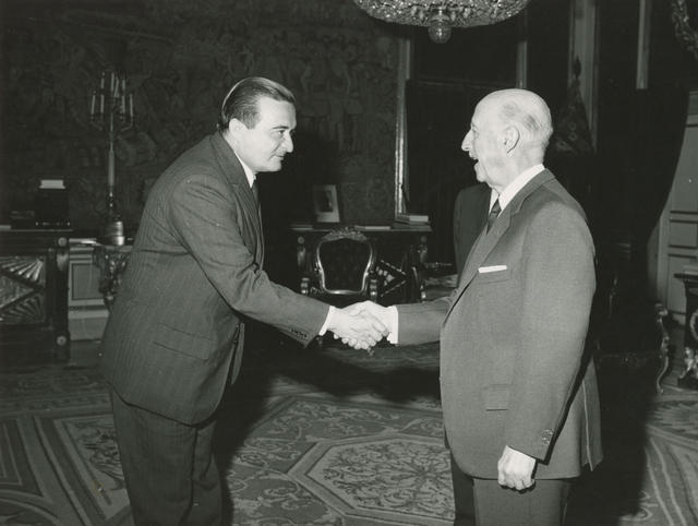 Instantánea de Francisco Franco durante una audiencia especial al ministro de Agricultura y Ganadería de Paraguay, Hernando Bertoni Flores.