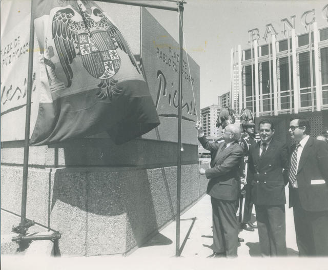 El Alcalde de Madrid, Enrique Tierno Galván, inaugura la plaza de Pablo Ruiz Picasso en Madrid.