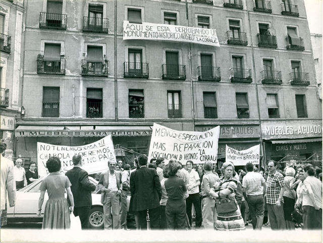 Los miembros de la Asociación de Vecinos de La Corrala-Lavapiés se manifiestan a favor de la protección de los edificios históricos