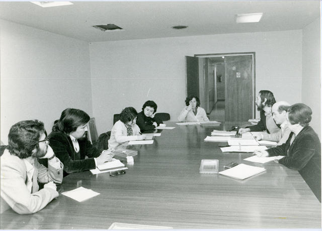 Profesores emigrantes en rueda de prensa, mayo de 1984