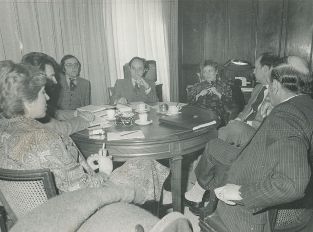 Presidentes de las comisiones de emigración de Galicia, Asturias y Andalucía con la directora y subdirectores generales del IEE